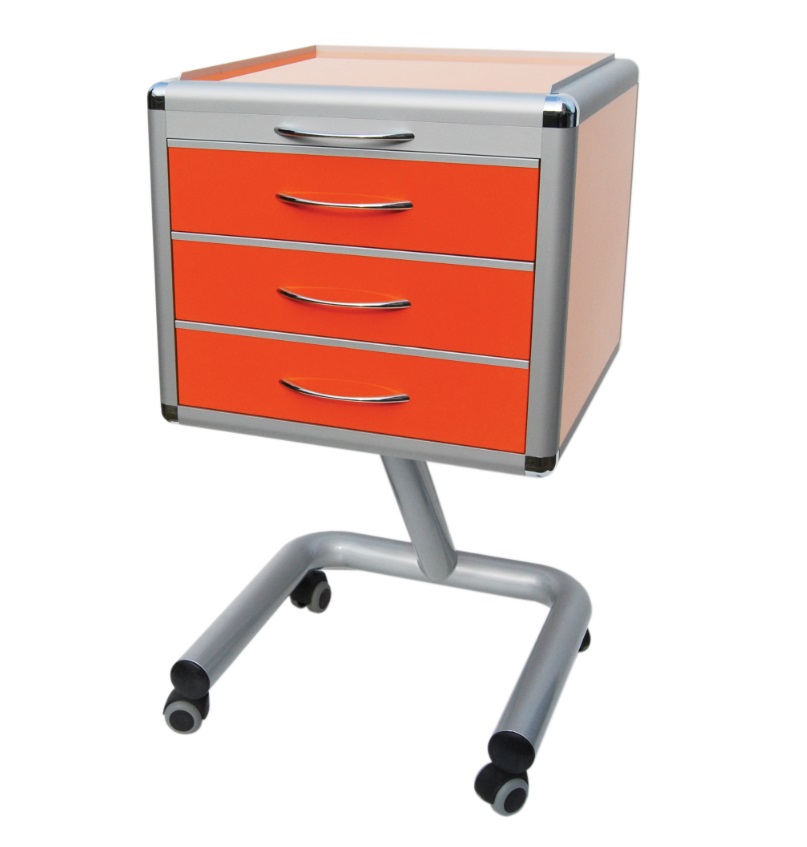 - asystor posiada trzy metalowe szuflady z uchwytami chromowanymi, dodatkowy uchwyt służy do przesuwania asystora