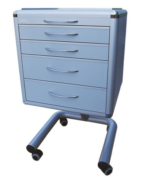 - asystor posiada cztery metalowe szuflady z uchwytami chromowanymi, dodatkowy uchwyt służy do przesuwania asystora