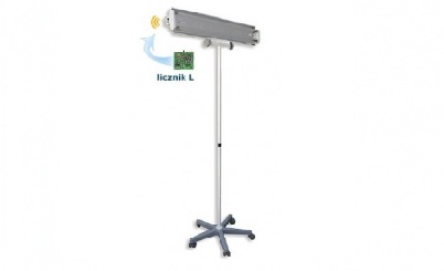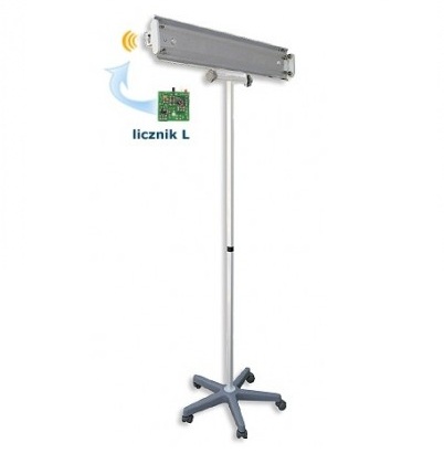 - Lampa posiada licznik cyfrowy z mikroprocesorem - bez wyświetlacza, lampa sygnalizuję oddając głos kiedy należy wymienić promiennik,