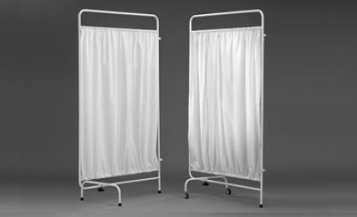 Parawany P-01 i P-02 - dostępny w dwóch wersjach: na stopkach (P-02) na kołach (P-01). Parawan metalowy malowany farba proszkową, tkanina bawełniana, możliwość łączenia kilku segmentów za pomocą zatrzasków. Tkanina bawełniana dostępna w kolorze: Biały, Turkus, Niebieski.