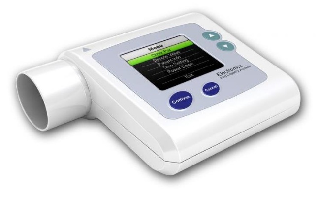 Spirometr SP10 - 1.8 " 160x128 TFT wyświetlacz, podświetlenie led, łatwy w obsłudze który pozwala na szybki odczyt wyników, wysyłanie danych na komputer, Polskie MENU, wymienne ustniki jednorazowe. Spirometr przeznaczony do gabinetów lekarskich, szpitali oraz na wizyty domowe.