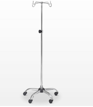 Wieszak kroplówki SK-4 CHROM - wyposażony w cztery uchwyty na płyny infuzyjne, budowa wieszaka chromowana wyposażona w koła jezdne, natomiast regulacja wysokości odbywa się za pomocą układu zaciskowego. Wieszak łatwy w utrzymywaniu czystości dzięki pokrytej warstwie chrom sprawia, że wieszak nadaje elastyczny wygląd.