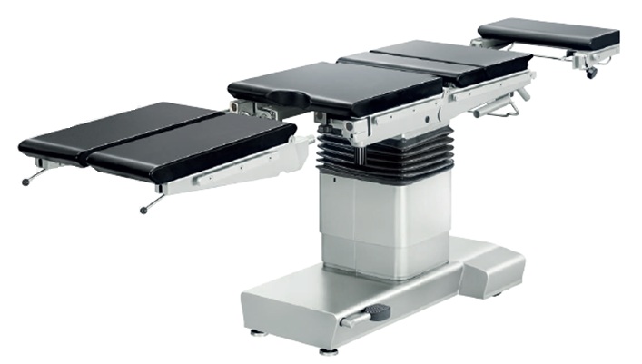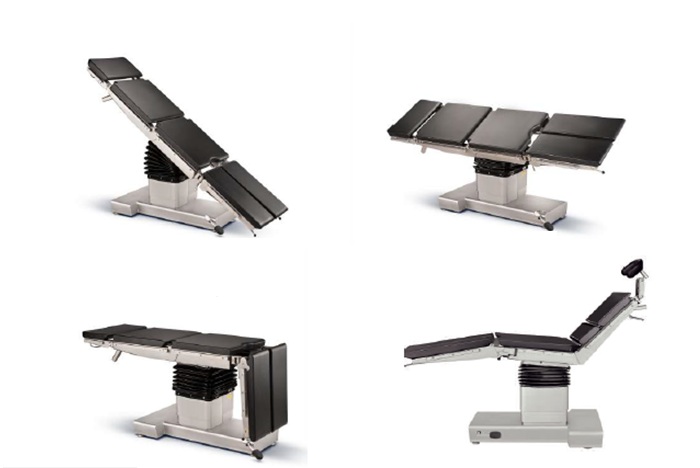 - Elektrohydrauliczna regulacja wysokości blatu, przechyłu bocznego, pozycji Trendelenburga i anty-Trendelenburga oraz wypoziomowania blatu.
