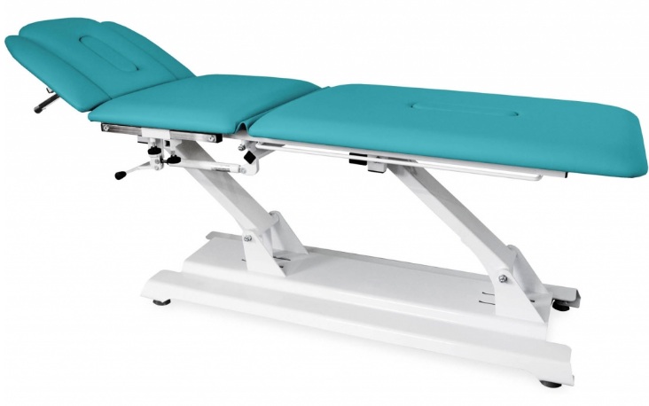 - Trzyczęściowy blat: Uniwersalność i adaptacja do różnorodnych zabiegów i pozycji pacjenta.