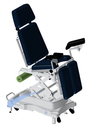 Stół zabiegowy FZ02 FINN - leże metalowe kilkusegmentowe, tapicerka skuropodobna, regulowana wysokość za pomocą siłownika elektrycznego, sterowana pilotem nożnym (opcjonalnie pilot ręczny). Stół przeznaczony do zabiegów ginekologicznych, chirurgicznych oraz urologii.