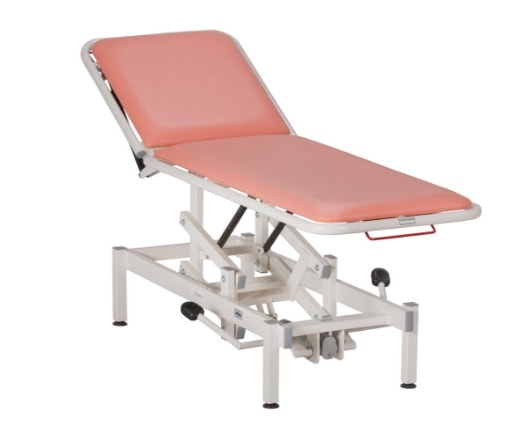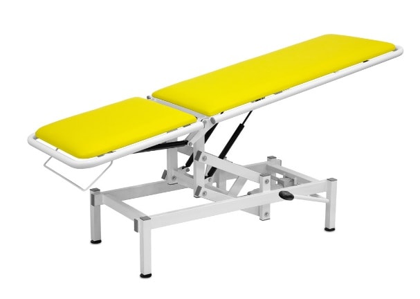 Stół zabiegowy lub kozetka - wyposażony w regulację wysokości oraz przechył dwusegmętowego blatu za pomocą nożnego mechanizmu lub ręcznego, stół posiada układ podnoszenia, który oparty jest na pantografie. Fotel przeznaczony do zabiegów jak również może służyć jako kozetka. Leże stołu tapicerowane, posiada duża paletę kolorów, którą dostępna jest po kontakcie z naszym działem sprzedaży.