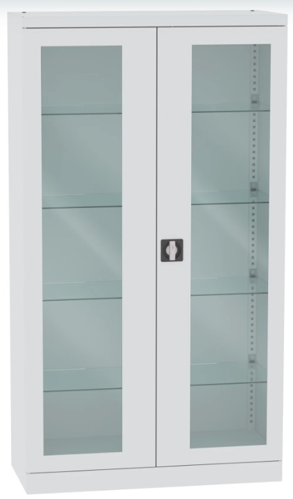 Jego otwarcie jest możliwe tylko w przypadku posiadania jednego z dwóch kluczy, pasujących do blokady. Szafka posiada także przestawne, szklane półki, regulowane, co 25mm, w wyniku czego dostosowanie ich do preferowanej wysokości oraz wielkości asortymentu nie będzie żadnym problemem.
