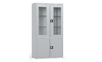 Szafa medyczna, dwudzielna. Część górna posiada dwa przeszklone szkłem hartowanym skrzydła drzwi uchylnych, zawieszone na zawiasach kołkowych oraz dwie półki wykonane ze szkła hartowanego o maksymalnym udźwigu 25kg. Część dolna wyposażona jest w jedną szklaną półkę zamykaną pełnymi drzwiami uchylnymi. Drzwi zamykane są zamkiem baskwilowym, ryglującym w trzech punktach i wykończone są uchwytem klamkowym. Szafa osadzona na kołach jezdnych. MDW/2K wykonana jest z blachy czarnej o grubości 0,8-1 mm. Malowana jest farbami proszkowymi (epoksydowo-poliestrowymi) w kolorze RAL7035 (jasny popiel).