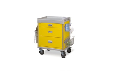 Wózki opatrunkowe dostępne są w trzech wersjach wielkości, przeznaczone do szpitali, oddziałów szpitalnych, sal zabiegowych, izb przyjęć. Wózek opatrunkowy wyposażony w centralny zamek, koła jezdne, wysuwany dodatkowy blat boczny, kosz uniwersalny, zamykany kosz na odpady, pojemnik na rękawiczki.