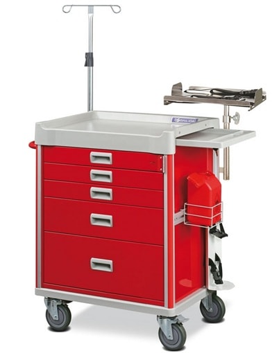 Wózki reanimacyjne przeznaczone są do szpitali, sal intensywnej terapii czy bloków operacyjnych. Wózek został wyposażony w dodatkowy blat wysuwany, centralny zamek, wieszak na kroplówkę, koła jezdne, podstawę pod defibrylator, uchwyt na zużyte materiały oraz płytę do przeprowadzeń RKO. Nasze wózki dostępne są w trzech wersjach.