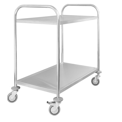 Wózek 2-półkowy ze stali nierdzewnej, uchwyt o profilu okrągłym