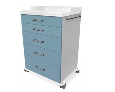 Wózek medyczny wielofunkcyjny JWW-A 3 - wyposażony w tace wózka wykonaną z laminatu poliestrowo-szklanego, korpus wykonany jest z płyty wiórowej zaś fronty z płyty MDF, a całość wózka pokryta jest okleiną PCV. Wózek wyposażony w cztery koła jezdne w tym jedno z hamulcem. Wózek posiada pięć szuflad wyłożone matą antypoślizgową.